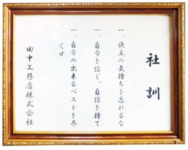 当社では社員大工も含め、朝礼時に社訓を全員で唱和します。常に原点を忘れないための儀式です。