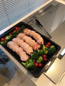 グリルで自動調理したチキンも盛り付けました