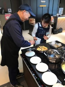 その間にパナソニック名物トリプルIHコンロで実習です