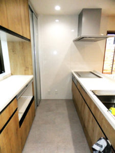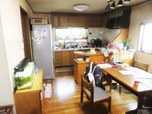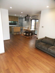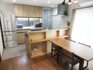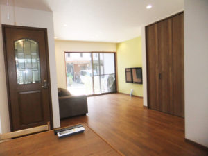 長年使われてきたリビングと玄関を思い切ってリニューアル。和室とLDKに分かれていた1階を一つの部屋にし、キッチンもフルオープンタイプに入れ替え。廊下から和室に入る入口は、ピクチャーウォールに変身です。新しいリビングには床暖房も導入しました。[京都市助成金適用案件]