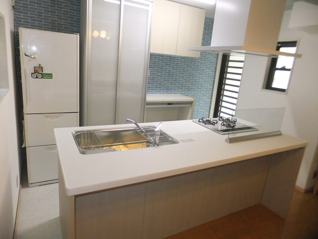 古くなってきたキッチンを入れ替えて、リビングのフローリングも張り替えました。暗くて動線が今一つな対面...