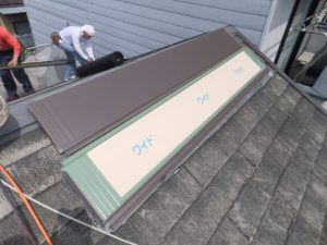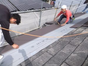 念のため今一度防水材を敷いて、屋根材を貼っていきます