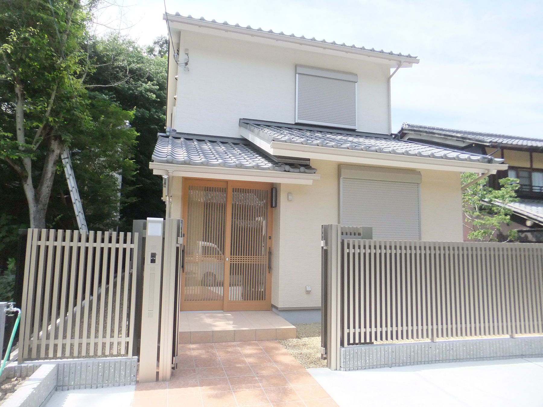有名寺院にも近い閑静な住宅地にお住まいを新築しました。 風致地区に入るので、周りの風景にも違和感のないよう配慮が必要でした。 広々とした周囲からの光や風を充分に取り入れられるよう、特に窓の配置には気を遣った新築邸宅です。